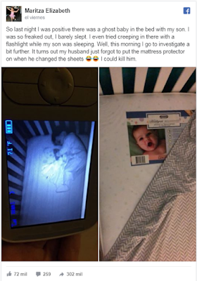 Él le dijo que el ‘fantasma’ en realidad se debía a un error suyo, ya que al colocar mal la cama, se traslucía la cara del bebé impreso junto a la etiqueta de cuidados del colchón. “Mi esposo olvidó poner el protector del colchón cuando cambió las sábanas… Podría matarlo”. Aclaró la mujer.