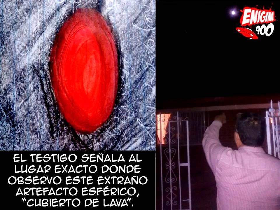 “Regresaba de comprar unas cosas del OXXO que está aquí a la vuelta, yo vivo aquí por el campito de beisbol de la calle 4 y avenida 28, cuando de repente mire que esa cosa bajo del cielo de manera sigilosa, como si buscara algo, yo la verdad me sorprendí demasiado porque no era algo que pudiera identificar, era como una pelota de fuego que emitía mucho brillo, imagínese una pelota de lava incandescente ni más ni menos, cuando la vi comencé a gritarle a mi esposa para que mirara esa bola sin embargo ya no volví a ver que subiera, me puse muy nervioso y ya no pude dormir, fue algo impactante y no sé, sentía como que me iban a salir unos marcianos por la ventana”, señalo el testigo anónimo.